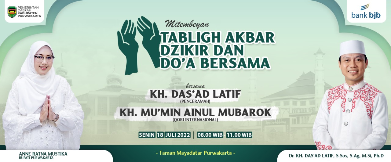 DALAM RANGKA HARI ULANG TAHUN PURWAKARTA YANG KE 191 DAN HARI ULANG TAHUN KABUPATEN PURWAKARTA KE 54 TABLIGH AKBAR DZIKIR DAN DO'A BERSAMA BERSAMA KH.DAS'AD LATIF BERTEMPAT DI...