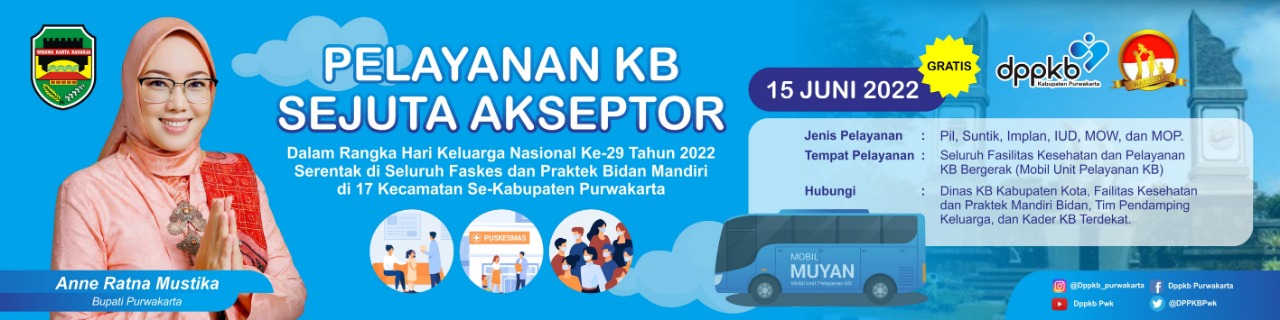 Akan dilaksanakan Pelayanan KB Sejuta Akseptor secara serentak di seluruh Faskes, Praktek Bidan Mandiri di 17 Kecamatan se-Kabupaten Purwakarta.
